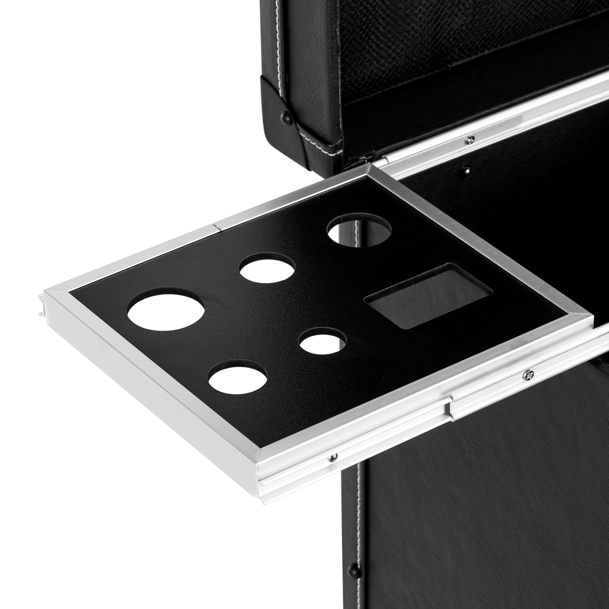 Il capiente organizer è dotato diun gran numero di scomparti. Ripiani estraibili con maniglie e alloggiamenti per accessori, cassetti, scomparti e tasche speciali per riporre prodotti e strumenti da barbiere rendono più facile mantenere in ordine la tua area di lavoro e migliorano notevolmente l’organizzazione dello spazio. Il facile montaggio e la rimozione delle ruotemigliorano la mobilità del mobile, grazie alla quale l’aiutante può essere spostato liberamente. La maniglia estensibile, situata sul retro del mobile, consente di trasportare facilmente il mobile.