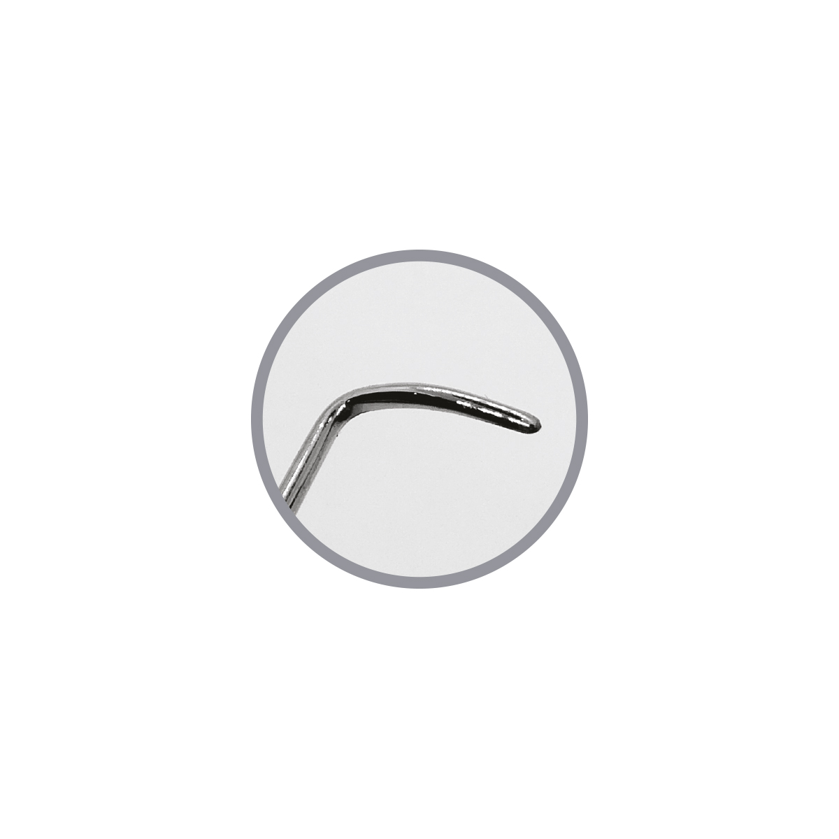 La sonda podologica M è realizzata in acciaio inossidabile di altissima qualità. Lo strumento è progettato per l’inserimento di tamponi e per la pulizia degli spazi vicino al fusto dell’unghia. La sonda ha un’impugnatura estremamente comoda. Le dimensioni ottimali dello strumento garantiscono la sicurezza durante l’uso da parte dei principianti. La sonda è adatta alla sterilizzazione in autoclave.