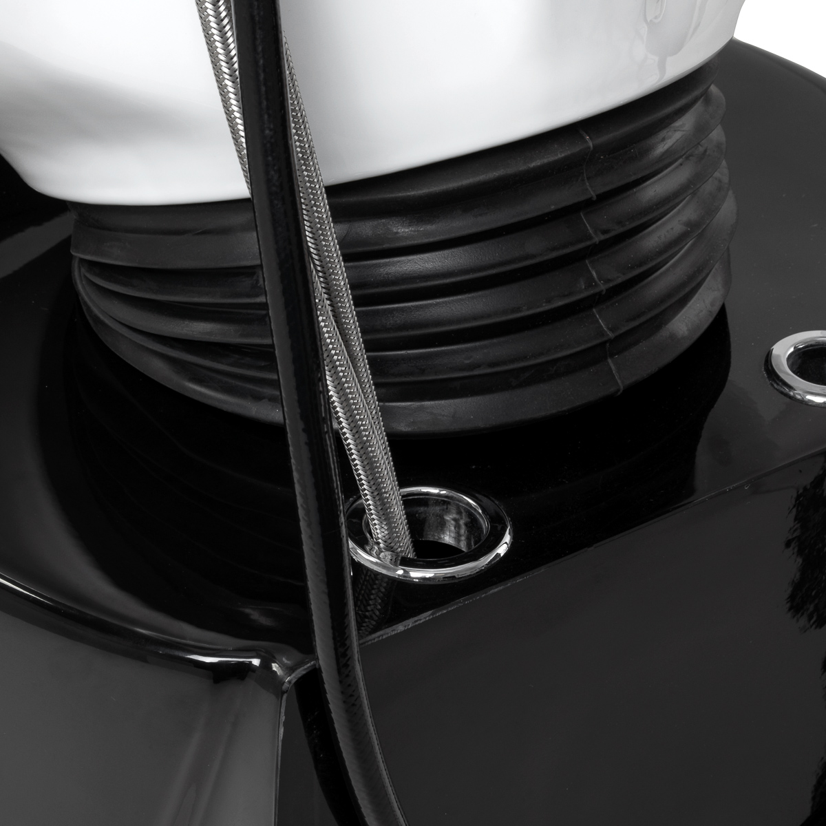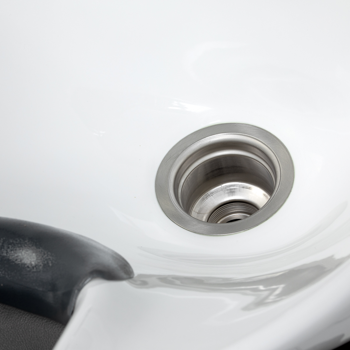 La profonda ciotola in ceramica nei toni del bianco riduce efficacemente gli schizzi d’acqua e dei preparati utilizzati durante i trattamenti. Ciò favorisce l’esecuzione comoda e precisa di vari servizi di parrucchiere. La struttura mobile della ciotola consente di regolare facilmente l’angolo di inclinazione in base alle esigenze individuali. Il materiale utilizzato è resistente, resistente allo scolorimento e ai graffi e facile da pulire. Il collare opportunamente profilato offre un comodo supporto per la testa durante il lavaggio, mentre la comoda copertura in plastica nei toni del nero elimina la sensazione di freddezza della superficie in ceramica.
