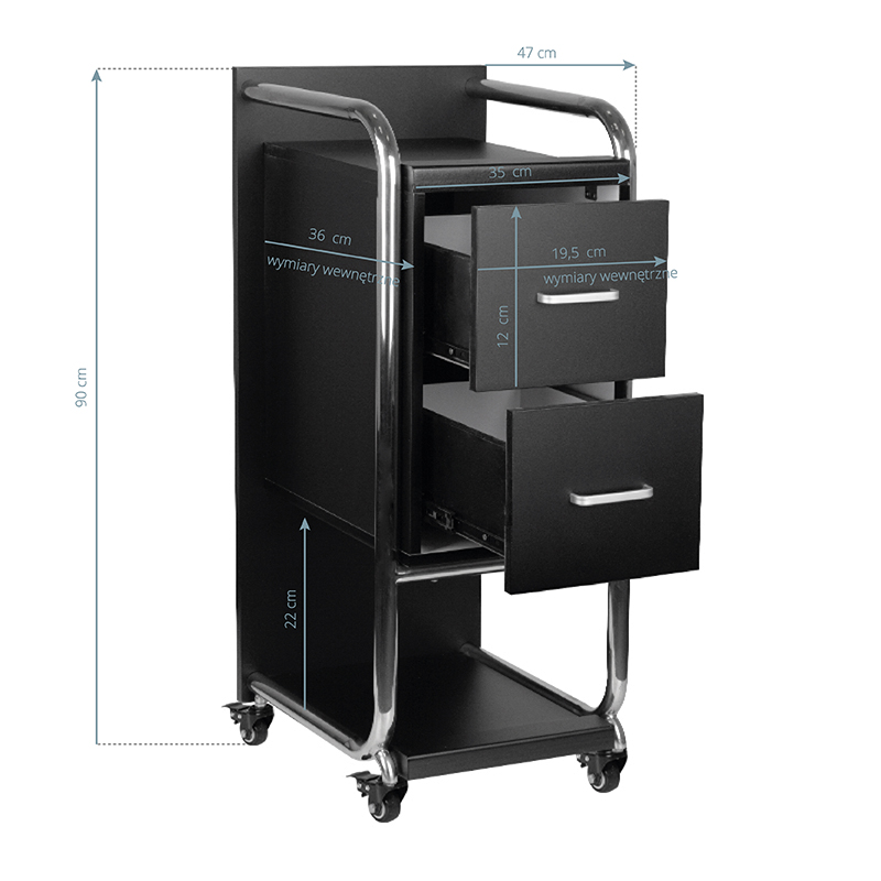 L’assistente parrucchiere Gabbiano Solo di alta qualità è un’elegante attrezzatura che migliora notevolmente il lavoro nel salone da parrucchiere. Due ampi cassetti e due ripiani di diverse dimensioni facilitano notevolmente l’organizzazione dei prodotti e degli strumenti necessari. Le ruote gommate con freni garantiscono un’adeguata mobilità, consentendo di posizionare i mobili ovunque nel salone da parrucchiere. Il design elegante – elementi in metallo lucido nei toni dell’argento e una struttura stabile in assi di legno nei toni del nero – metterà perfettamente in risalto il carattere degli interni.