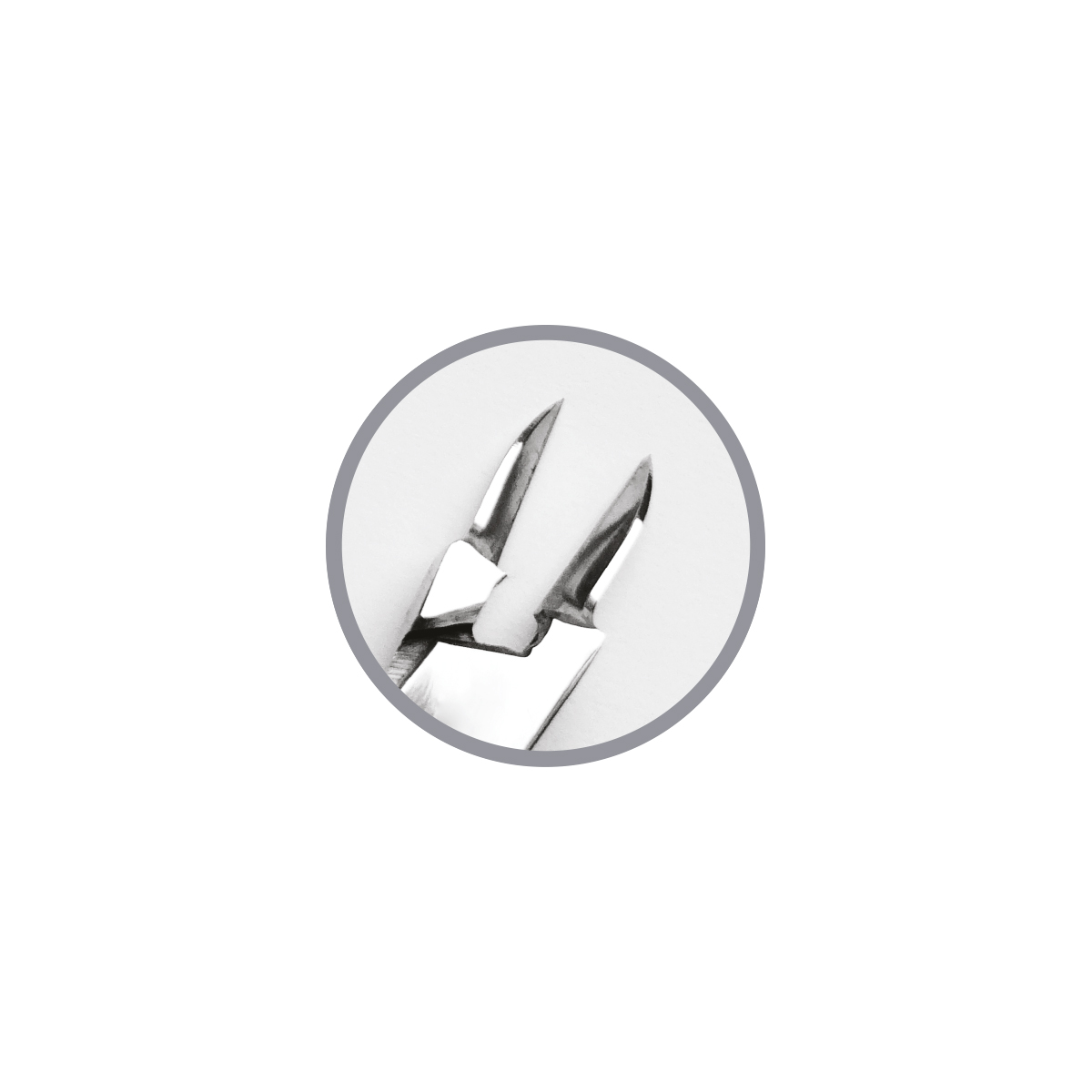 Le pinze dritte e appuntite (laterali/molto strette) sono realizzate in acciaio inossidabile di altissima qualità. Si tratta di uno strumento resistente e preciso con una superficie di taglio affilata. Il design speciale della lama rende le pinze eccellenti per accorciare e rifinire le unghie incarnite. Il modello è dotato di un meccanismo di sicurezza a doppia molla. Lo strumento può essere sterilizzato in autoclave. Le pinze sono consigliate soprattutto per l’uso in studi di estetica e podologia. Lo strumento è venduto in una scatola di latta decorativa, che protegge le pinze durante il trasporto.