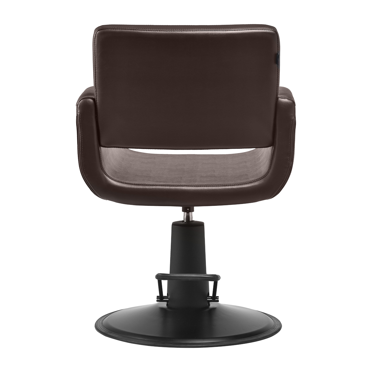 I braccioli ergonomici supportano la postura corretta del cliente, garantendo comfort e facilitando taglio e styling precisi. Il meccanismo di rotazione completa offre maggiore mobilità e libertà di movimento, rendendo il lavoro del parrucchiere più fluido, più efficiente e meno faticoso. Una pratica apertura tra lo schienale e la seduta facilita la pulizia e la rapida rimozione dei peli dalle zone difficili da raggiungere. Ciò consente una preparazione efficiente e igienica del salone per il cliente successivo.