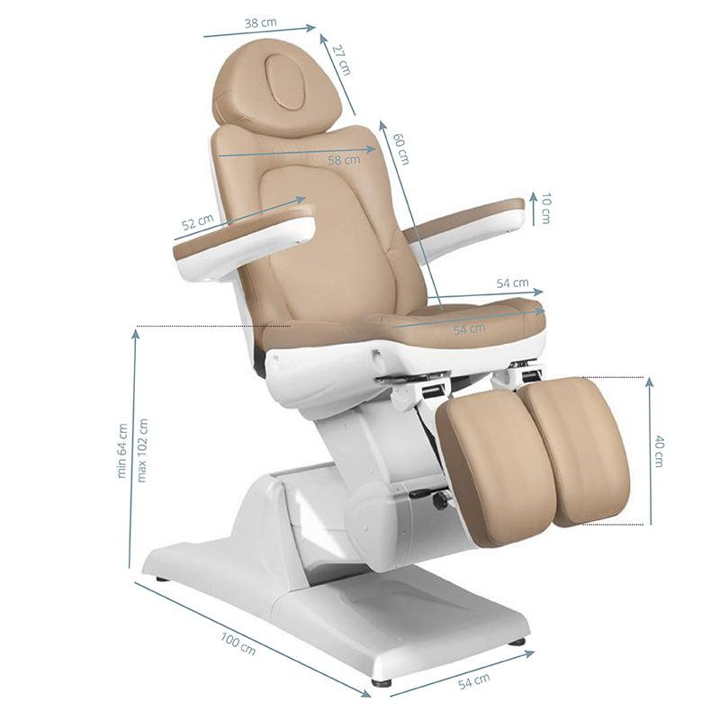 Moderna poltrona estetica regolabile elettricamente, che garantisce comfort durante il trattamento non solo per i pazienti ma anche per le persone che eseguono la procedura.