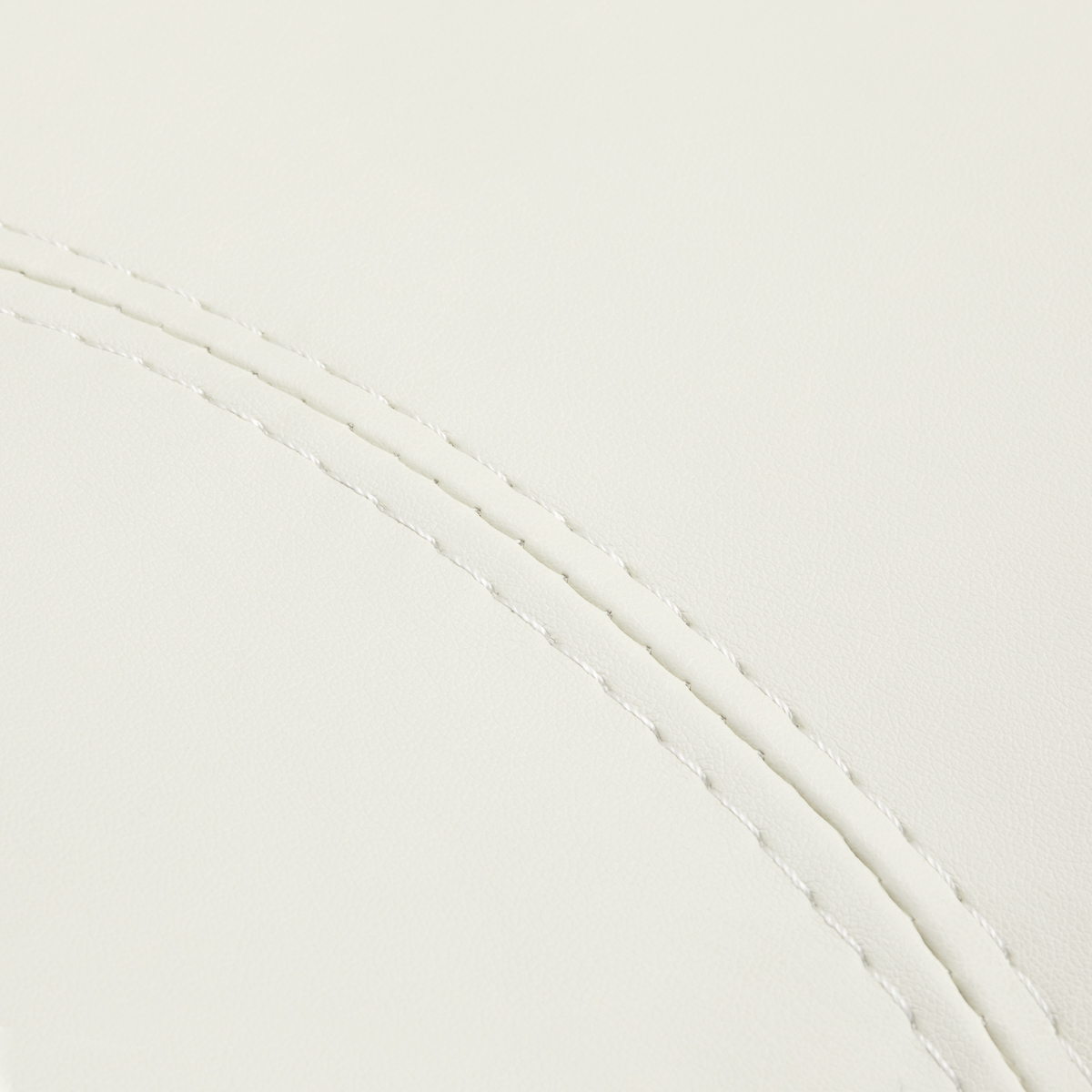 La base a cinque razze, opportunamente progettata, rende lo sgabello stabile, anche durante lavori intensivi. Inoltre, è dotato di ruote, che ne facilitano lo spostamento. La sedia è stabile e resistente. Il rivestimento è realizzato in similpelle nei toni del bianco; grazie all’utilizzo di tale materiale, è resistente all’umidità e facile da pulire.