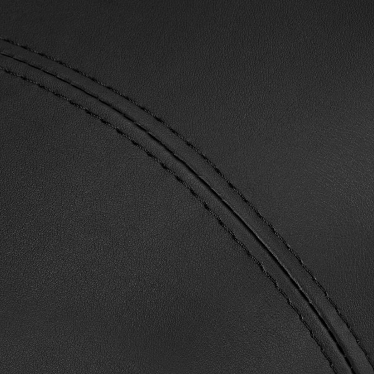 La base a cinque razze, opportunamente progettata, rende lo sgabello stabile, anche durante lavori intensivi. Inoltre, è dotato di ruote, che ne facilitano lo spostamento. La sedia è stabile e resistente. Il rivestimento è realizzato in similpelle nei toni del nero; grazie all’utilizzo di tale materiale, è resistente all’umidità e facile da pulire.