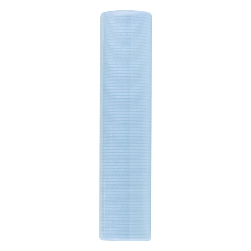 Telo cosmetico blu monouso in rotolo, con perforazione. Perfetto per un tavolo da trucco e per un lettino per estetica.