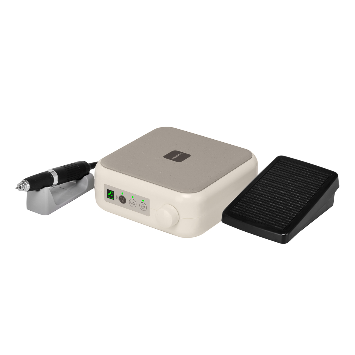 Il trapano per unghie è dotato di un pedale, che consente un controllo preciso e pratico della velocità di rotazione senza l’uso delle mani. Grazie a questa soluzione, il lavoro diventa più ergonomico e fluido, consentendo la massima concentrazione sui trattamenti eseguiti. Il pedale è una soluzione ideale per i professionisti che apprezzano comfort ed efficienza.
