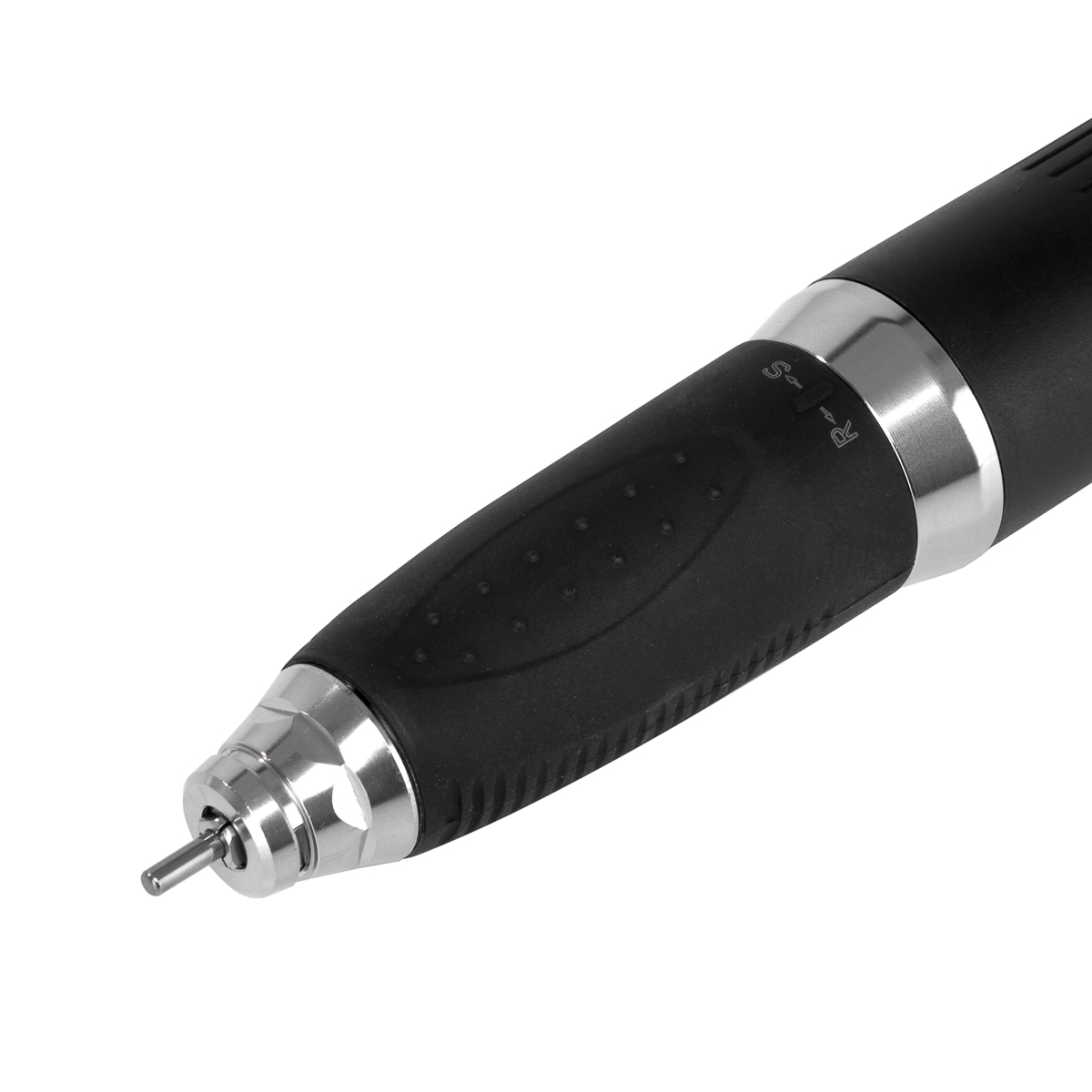 Utilizzando la manopola, è possibile regolare la velocità della testina fino a 50.000 giri al minuto e la velocità corrente viene visualizzata su un display digitale. Ciò consente un adattamento efficiente alle esigenze individuali e un’esecuzione confortevole di un’ampia gamma di trattamenti. I pulsanti consentono di passare rapidamente al pedale, cambiare il senso di rotazione e arrestare il dispositivo (funzione pausa), garantendo il pieno controllo del trapano per unghie e facilitando l’adattamento del suo funzionamento ai servizi eseguiti. Gli indicatori LED informano sullo stato del dispositivo, mostrando il senso di rotazione, l’attivazione del pedale, l’abilitazione della funzione di crociera automatica e la pausa. Il funzionamento del dispositivo è semplice, efficiente e intuitivo, il che sarà sicuramente apprezzato dagli utenti più esigenti.